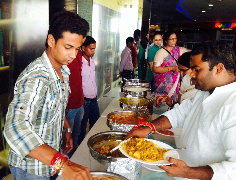 आयोजन आगे बढ़ा...दोपहर का खाना...लाई बड़ी, दही मिर्ची, बिजौरी के साथ्ज्ञ जिमीकंद की सब्जी, टमाटर की चटनी, चैसेला, बोबरा.....पूरा छत्तीसगढ़ी भोज तैयार था।